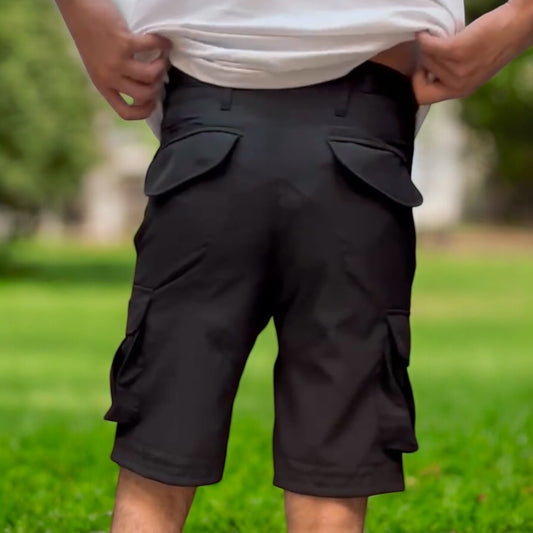 Black lightweight cargo shorts